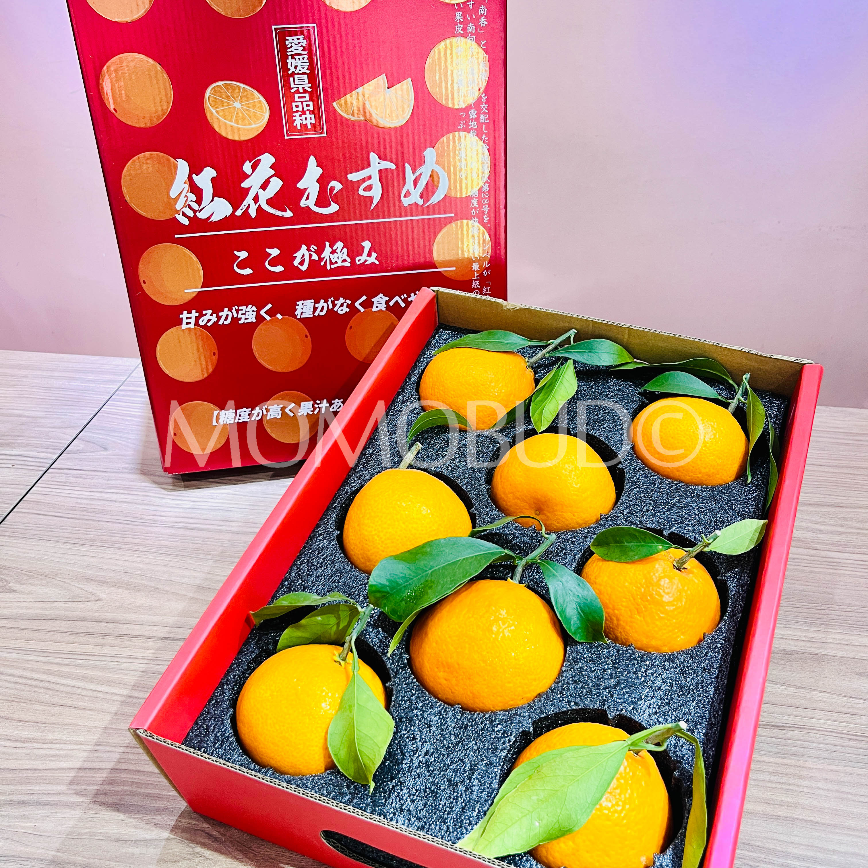 The flesh is silky smooth and melts effortlessly in the mouth, releasing an intense burst of juice with every bite. Its sweetness is rich and concentrated, complemented by a gentle citrus fragrance that lingers softly on the palate. Compared to other Red Beauty varieties, Benihana Musume offers a finer texture, deeper sweetness, and a more luxurious eating experience.