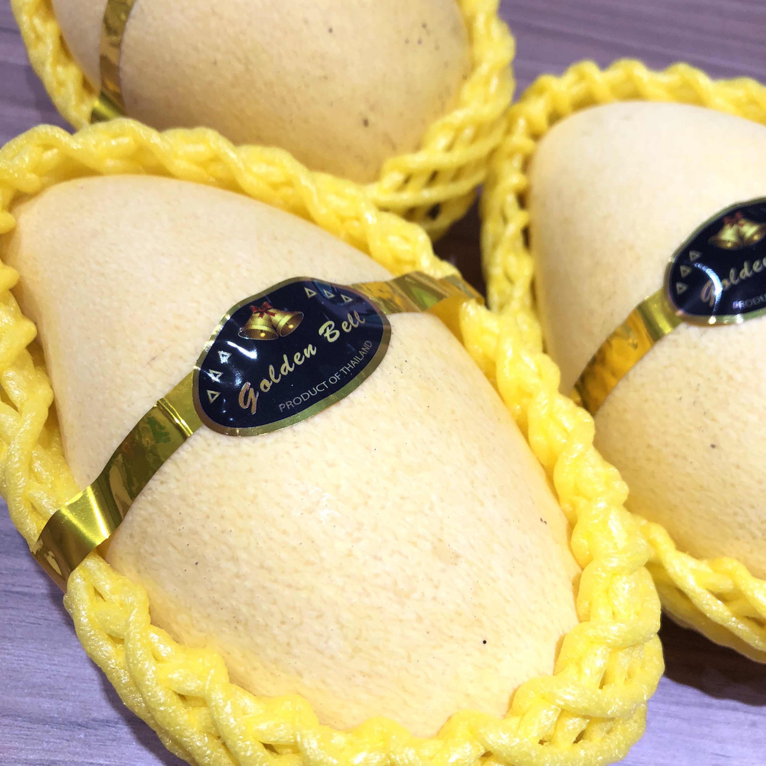Selectively packaged for the best quality and appearance, Golden Bell Honey mango are not just pretty, but with mouth-watering sweetness and juice content, almost no-fibre flesh to make your day bright again!