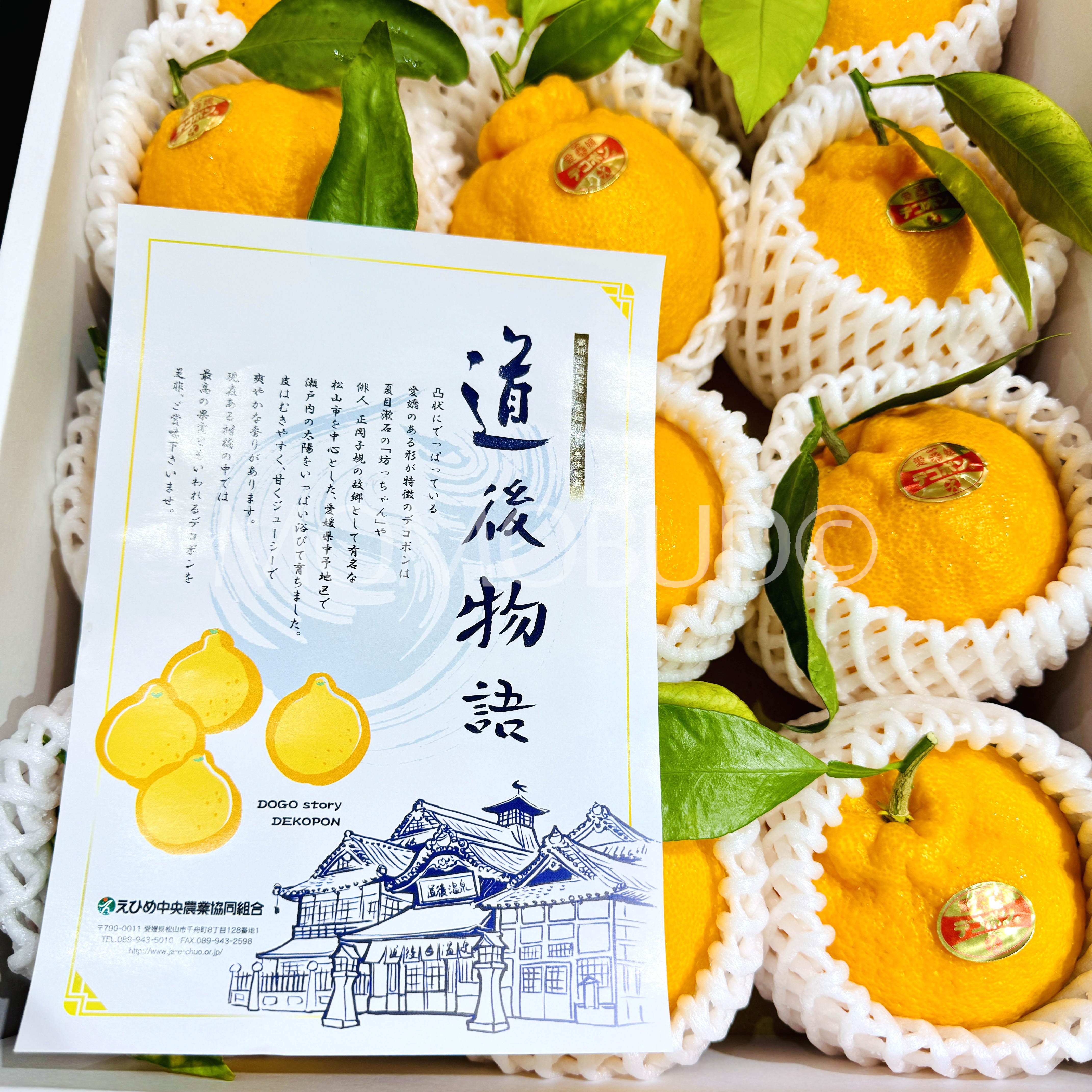 Grown in the warm, misty climate of Ehime’s Dogo Onsen hot spring region, these vine-ripened Dekopon are harvested at peak ripeness — only Shiranui oranges with a sugar content of 13° or more and acidity below 1.0% qualify to be called “Dekopon,” a rare and carefully cultivated citrus known for its plump, seedless flesh and melt-in-your-mouth texture. They also come with leaves still attached as proof of freshness.