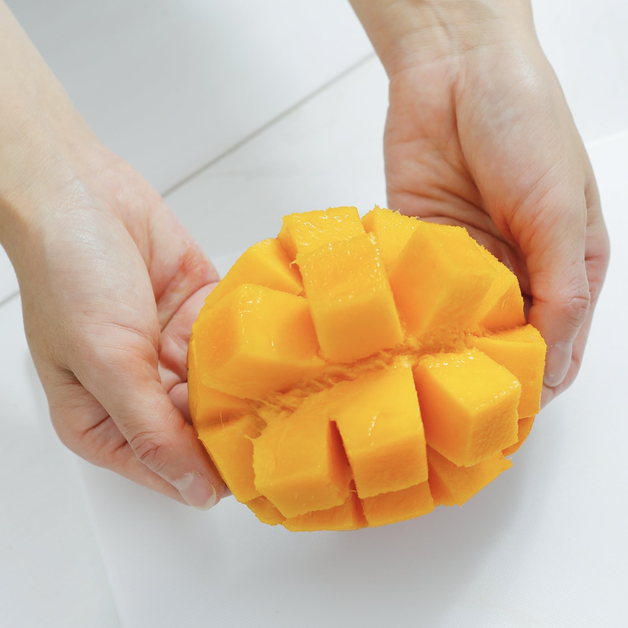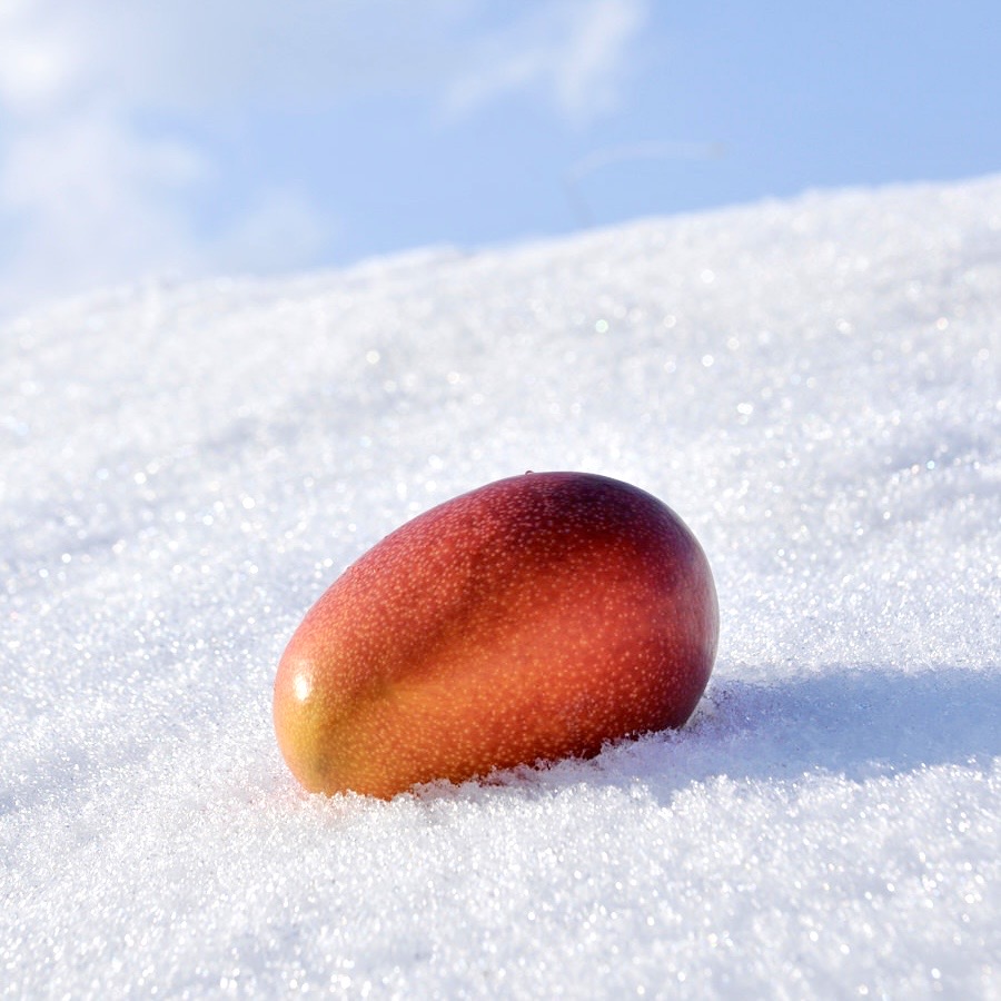 Tokachi’s low humidity and minimal winter pests allow these mangoes to mature naturally without pesticides. Blooming in August, they ripen safely in greenhouses, taking full advantage of Hokkaido’s long hours of sunshine, hot spring water, and even snow to create rare mid-winter mangoes — the only mangoes in Japan shipped in winter. Growing on the tree 2 months longer than tropical miyazaki mangoes gives them a soft, melt-in-your-mouth texture with almost no fiber.