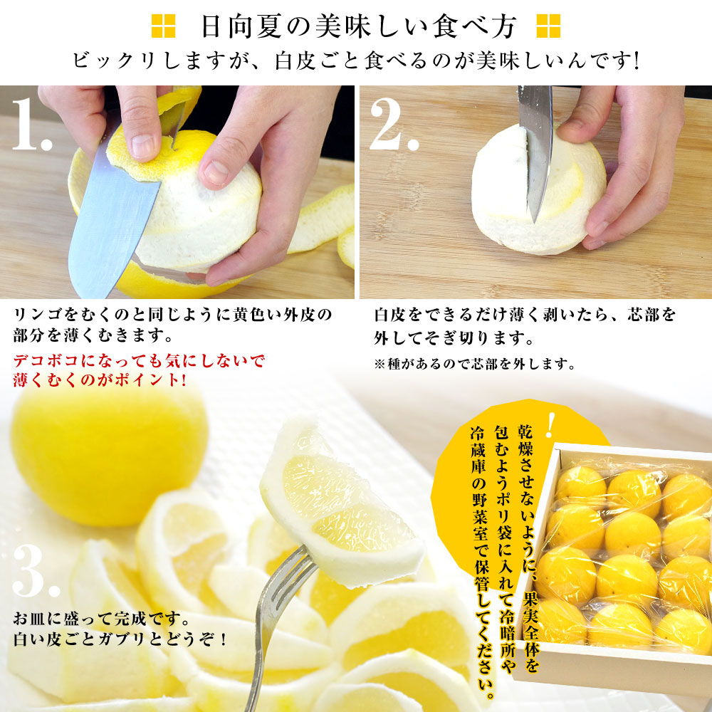 One of Miyazaki’s representative citrus fruits, Hyuganatsu is a refreshing fruit that resembles the scent of yuzu. It was discovered in Miyazaki in 1820 (around the Edo period). Later, it was named “Hyuganatsu orange” around 1890 and is widely popular today. In Kochi prefecture, it is known as “Konatsu” or “Tosa Konatsu”, and in Ehime prefecture, it is called “New Summer Orange”.