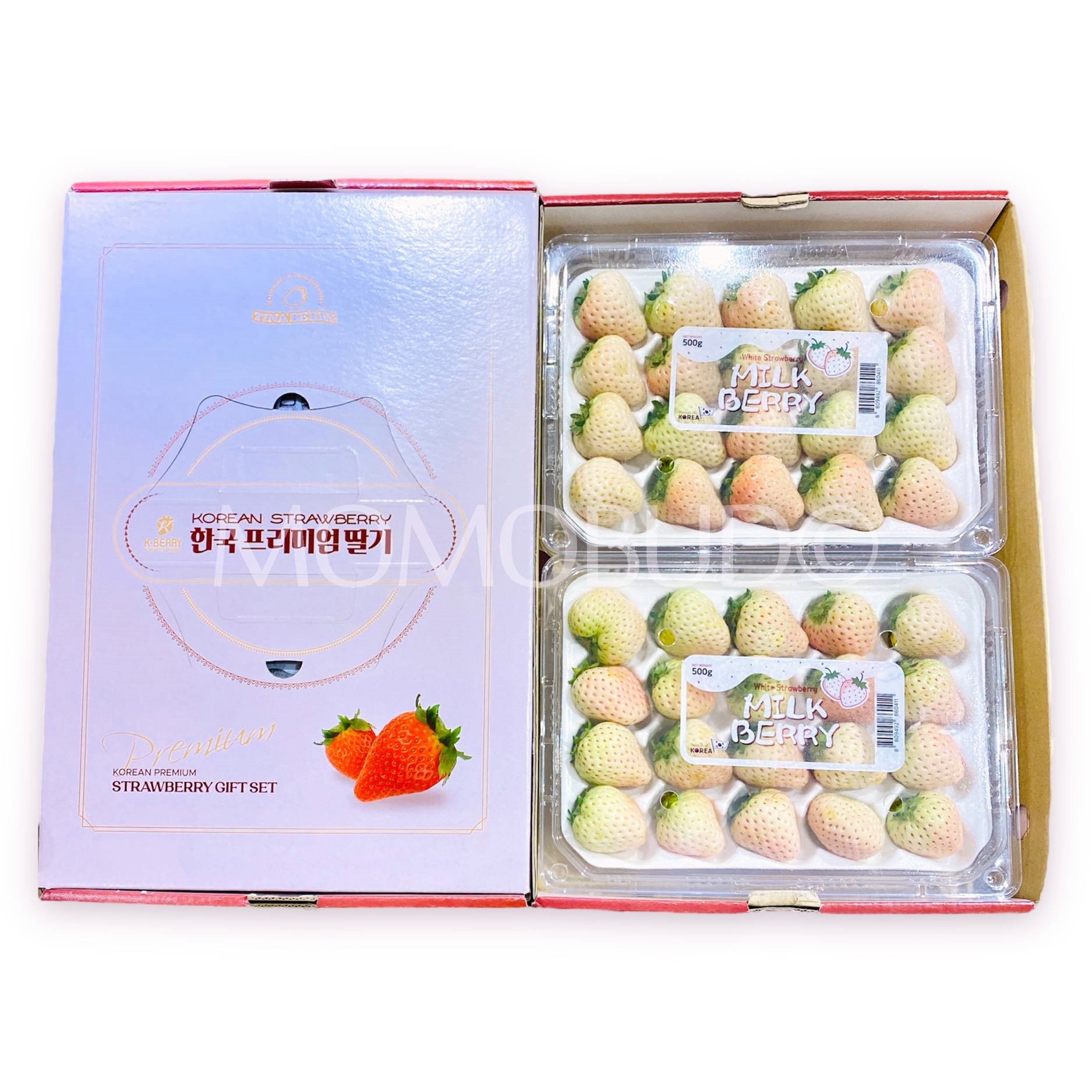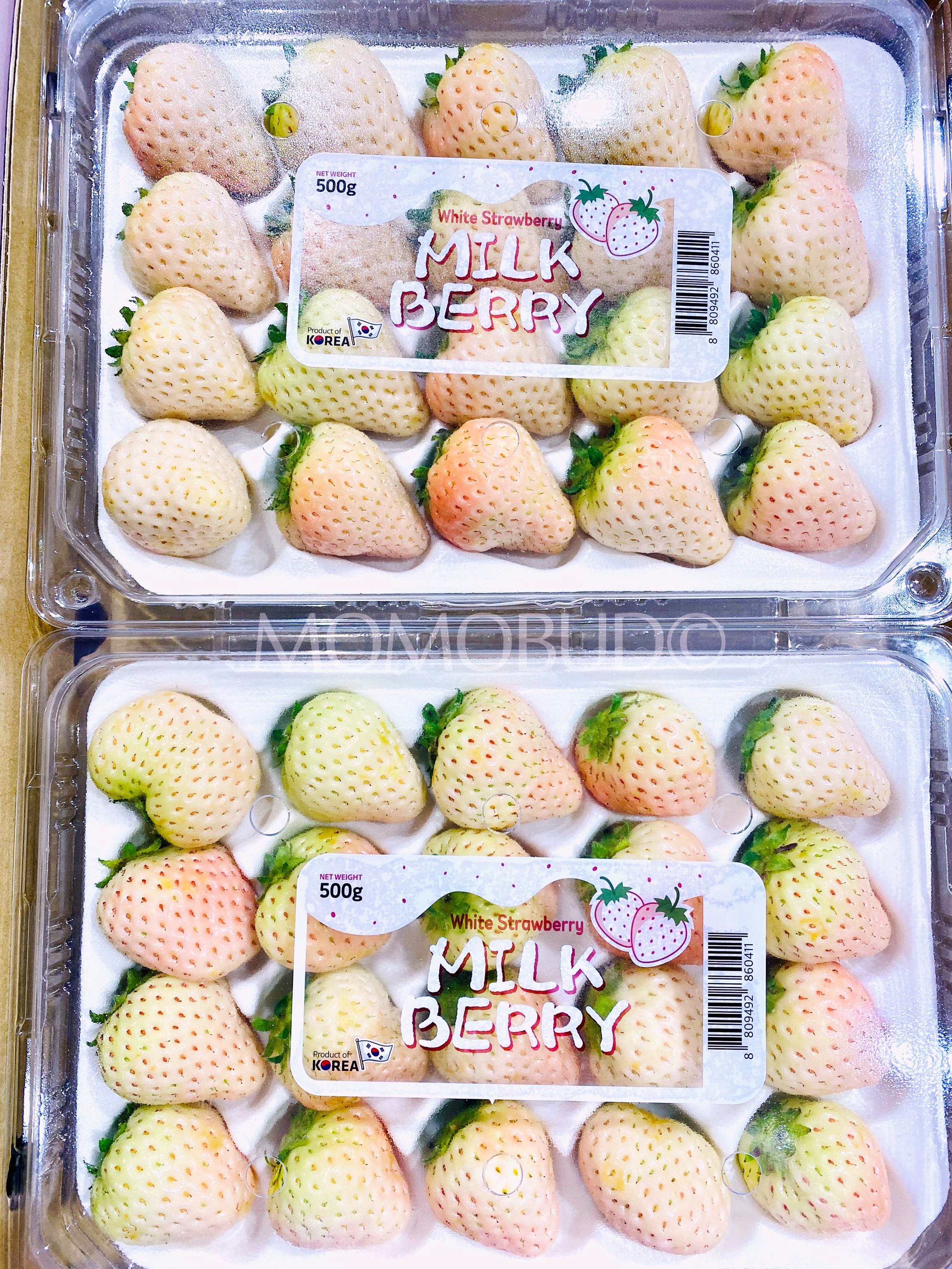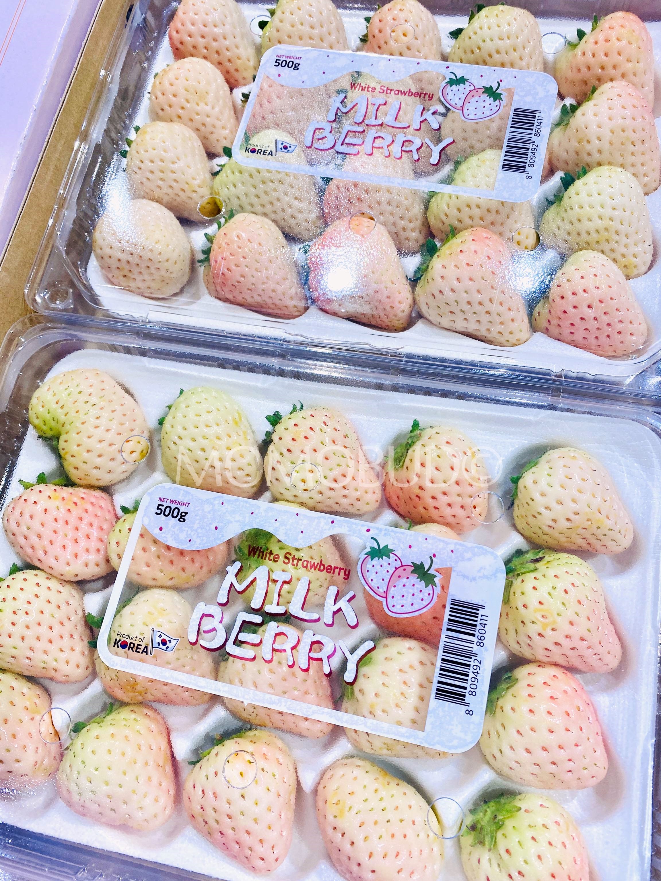 Milk White Strawberries are grown using a special technique to bred with low natural level of Anthocyanin (chemical which gives fruits their colors) to maintain its white cream color. It’s light yet smooth juicy texture gives an excellent balance with unique berry fragrance and sweetness.