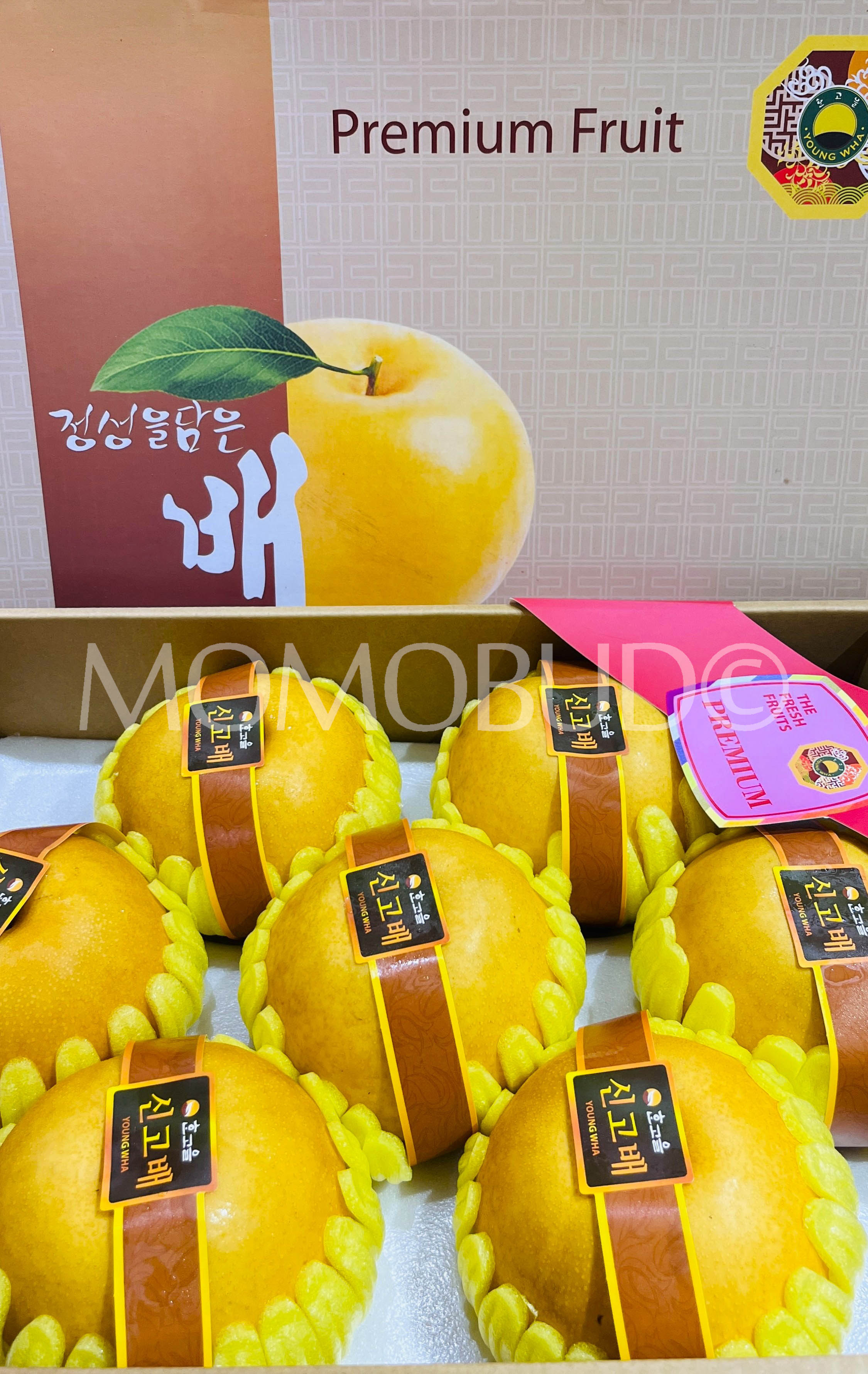 Korean-breed Singo pear is known for its crunchy texture and sweet over-flowing juices. It is especially popular to consume during the summer season to cool and refresh oneself.